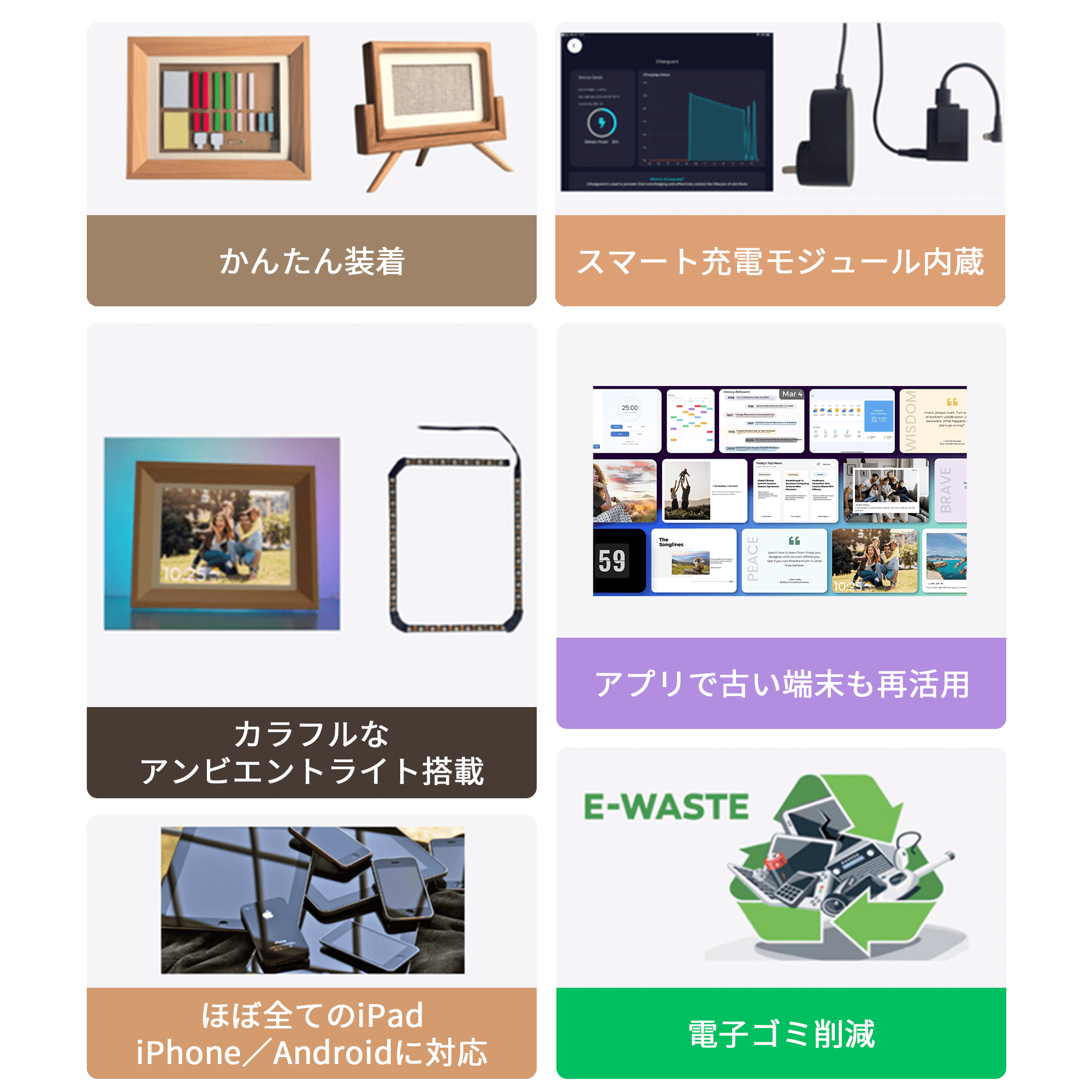 フレーム背面の LED が、 画面の写真の色に連動して自動で変化。 まるでギャラリーのような表現力を実現します。